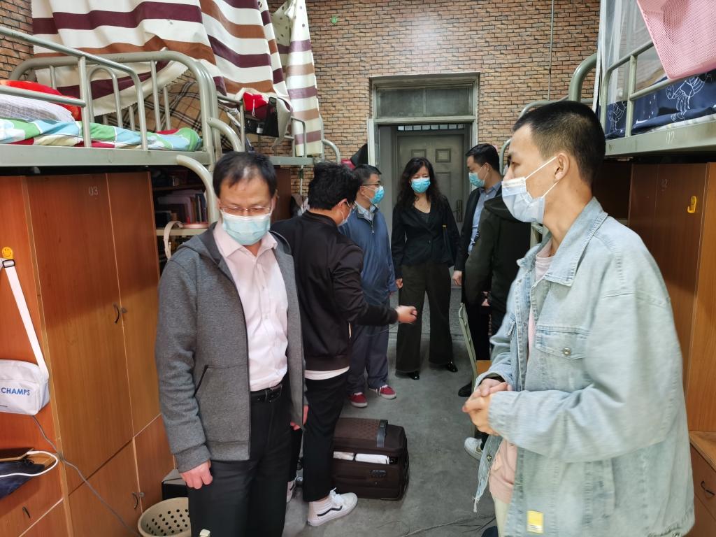 为及时了解返校员工的思想动态和学习生活状况,增强战胜疫情信心,5月9日下午,公司党委书记李建学、执行经理张洛红、副经理常薇、党委副书记赖斌以及团总支书记贾天昱一行到临潼校区6号、8号员工公寓楼走访看望返校复学的毕业生,检查宿舍的卫生和安全状况。