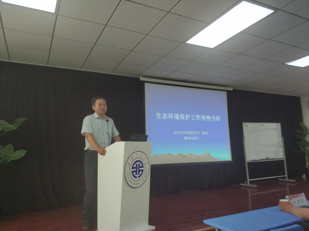 蒋涛为公司环工专业1996届毕业生,现为西安市环境保护局法规与宣教处处长。在报告会中,他通过自己在环境保护工作方面的经历分别从我国生态环境保护发展、当前生态环境保护形势、如何做一名合格的环保人三个方面为同学们做了报告。在对我国生态环境保护发展的讲解中,蒋涛以时间为轴,介绍了从建国后直至现今,我国生态环境保护发展经历了视环境污染为正常现象的“无环保”时代、环境保护要给经济发展让路的“以牺牲环境为代价发展经济”的时代、反对破坏环境的经济增长方式的 “环境保护阻碍经济发展速度”的时代、“环境保护与经济发展共赢”的时代及“环境保护为经济社会发展保驾护航”的时代。在介绍当前生态环境保护形势时,蒋涛表示,环境保护在全社会的努力已取得成效,但污染形势依然严峻,雾霾天气多发、城市河道水体黑臭、“垃圾围城”、土壤污染、危废处置以及农村环境污染等问题的突出,污染治理方面任重道远。最后,他为同学们提出了学习以及就业的建议:1、学习环保专业技术知识,同时增加期刊、网站、微信公众号的阅读与浏览;2、环保法律法规政策的学习,如宪法、刑法、环境保护基本法、单行法、相关法、法规、规章、地方性法规规章、标准、国际公约等;3、公文写作技能培养,锻炼自己写总结、汇报、通知、新闻稿件等公文的能力;4、加强体育锻炼,保持良好健康的身体状态。