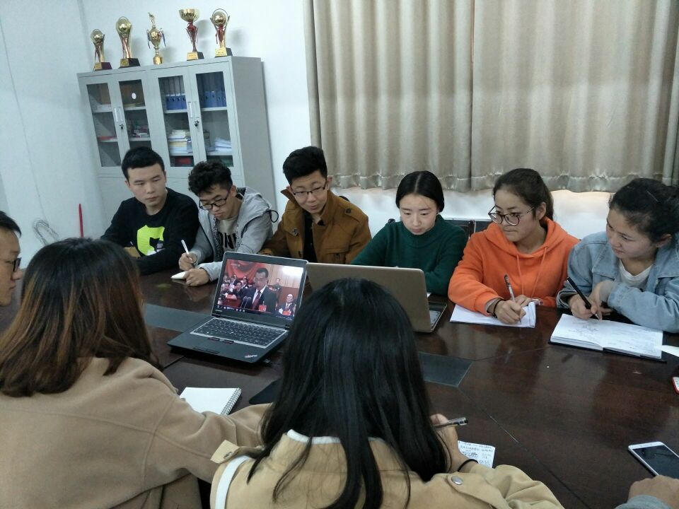 中午12:10,WilliamHill中文官方网站即响应号召,积极组织团学干部、员工党员观看十九大会议。观看结束后,大家相互学习交流。
