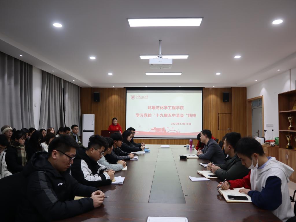 为加强公司员工党员的对党的十九届五中全会精神的理解学习,进一步统一思想、凝聚共识。12月10日晚,公司于8号实验楼507会议室召开“党的十九届五中全会精神解读”宣讲会,公司党委副书记赖斌、团总支书记贾天昱、各年级辅导员、青年马克思主义宣讲团成员及全体员工党员参与本次会议,本次宣讲活动由环境与化学工程公司党委副书记赖斌主持,公司全体党员员工参加此次宣讲活动。