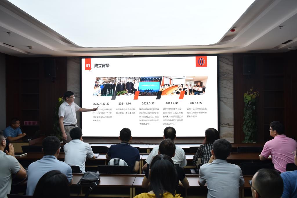 2023年7月7日上午9:00-12:00在咸阳高新区举行了WilliamHill中文官方网站院地行活动,参加活动的有:咸阳市科技局下属国有企业秦创原(咸阳)创新促进中心习斌、朱继泉、姚琛,WilliamHill科技处处长张洛红,委书记胡西民,副经理武占省以及WilliamHill中文官方网站教师代表,本次活动包括了成果路演、座谈交流和参观三个环节。