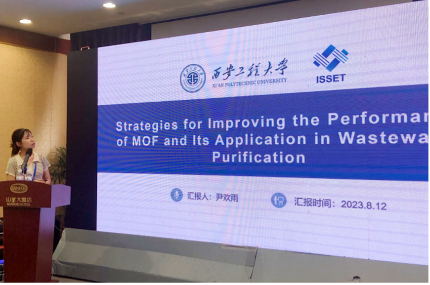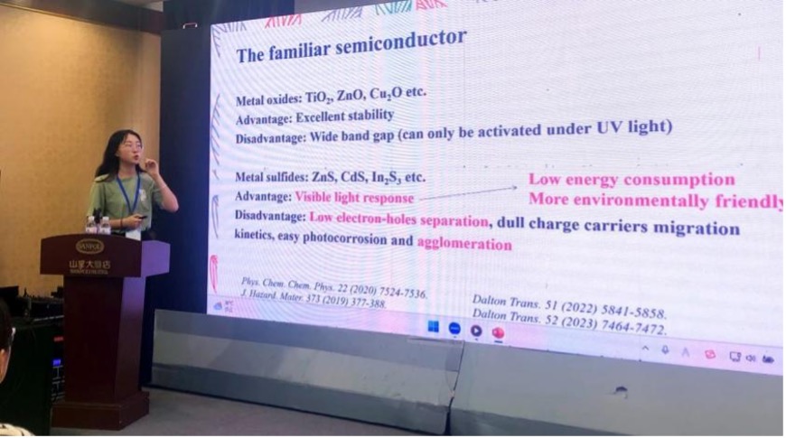 公司李庆老师课题组研究生刘天卉、尹欢雨参会,在半导体材料分会场分别作了题为“Band Gap Adjustment of Semiconductor-like Metal-Organic Frameworks (MOFs)”和“Strategies for Improving the Performance of MOF and Its Application in Wastewater Purification”的精彩口头学术报告,并针对与会专家学者的提问进行了充分讨论和交流。
