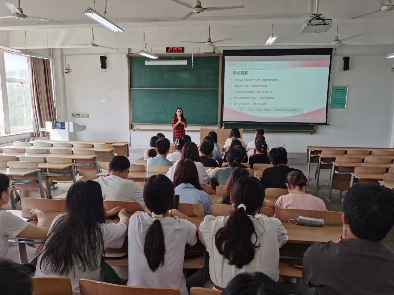 林定武重点介绍了当前就业形势、研究生就业优势与挑战、问题困惑、就业建议等内容,他建议同学们早准备、早谋划、早行动,客观认识目前就业现状,做到有的放矢。他强调,毕业生们应当根据自己的兴趣和优势,客观评估自身能力,科学规划职业道路,不断推进自我实现。研究生要明确自身职业定位和优势特长,提前了解招聘单位的岗位需求,他鼓励大家勇于追梦、勤于实践,争取在竞争激烈的就业市场中脱颖而出。朱瑾通过对近几年公司研究生就业数据比对及2025年就业形势的分析,积极引导员工尽早尽快确定就业方向,明确就业目标,还针对简历制作、笔试面试等求职技巧与毕业生进行了交流。