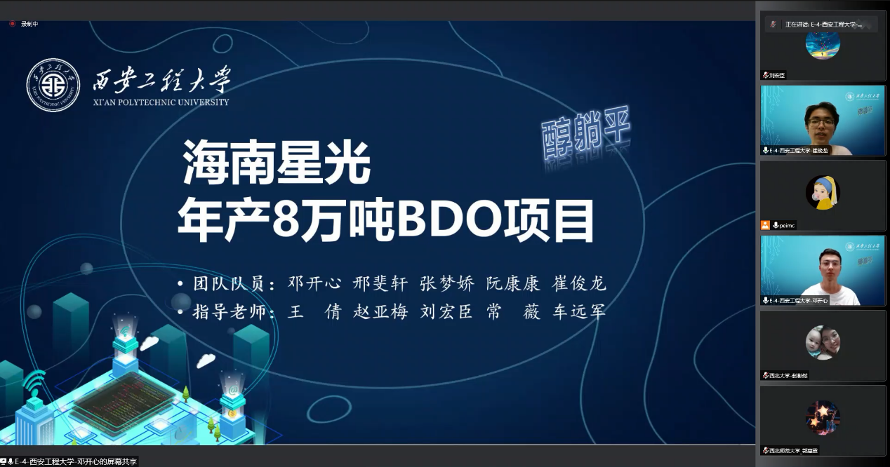 2022年8月2日,第十六届“天正设计杯”全国老员工化工设计竞赛西北赛区决赛在西北大学举行。大赛围绕“为某大型化工企业设计一座1,4-丁二醇生产分厂或为现有的1,4-丁二醇生产分厂设计技术改造方案”设计,公司参赛队在赵亚梅、王倩、刘宏臣、常薇、车远军、李亚楠以及霍锦华老师共同指导下,由邓开心、邢斐轩、张梦娇、阮康康、崔俊龙同学组成的“醇躺平”参赛队从西北赛区281支队中脱颖而出,进入第二轮全国赛代表队选拔的激烈比拼中,荣获全国“二等奖”和西北赛区“一等奖”的优异成绩。另外,由王耀伟、胡伟彬、李佳其、王永韬、张连帅同学组成的“醇狱”参赛队获得全国“三等奖”,由洪辰铭、狄世杰、陈丽、李琪和吕瑞展同学组成的“五等分的醇”参赛队获得西北赛区“三等奖”。