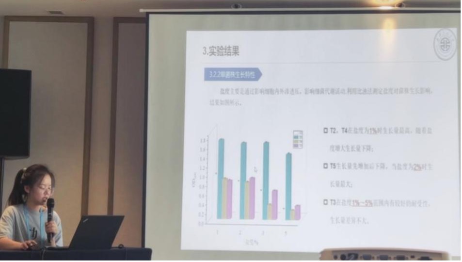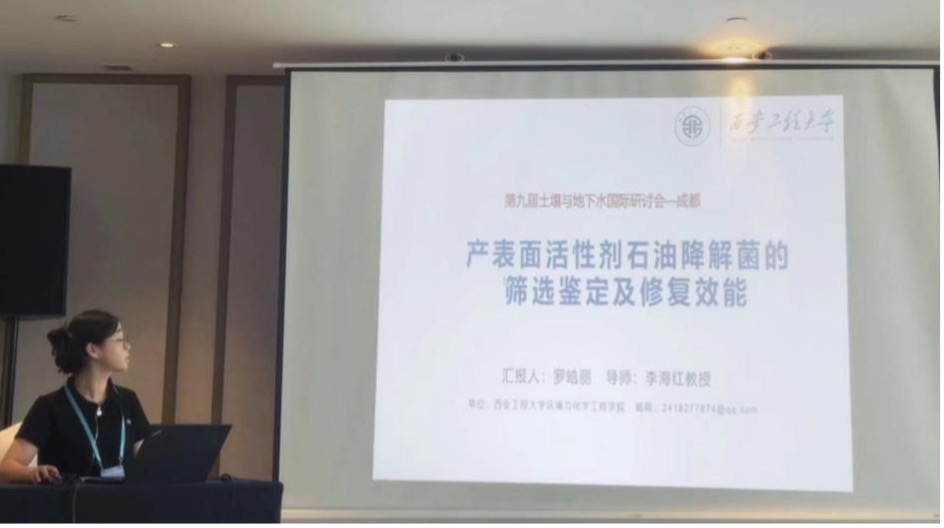 公司李海红老师课题组研究生林婷、吴沁如、罗皓丽、贾苗苗参会。在研究生论坛专场中罗皓丽、贾苗苗分别作了题为“产表面活性剂石油降解菌的筛选鉴定及修复效能”、“石油降解菌的筛选鉴定及混合菌系的构建”学术汇报。汇报结束后,课题组同学与各高校研究生针对石油污染土壤修复效果做了学术讨论。