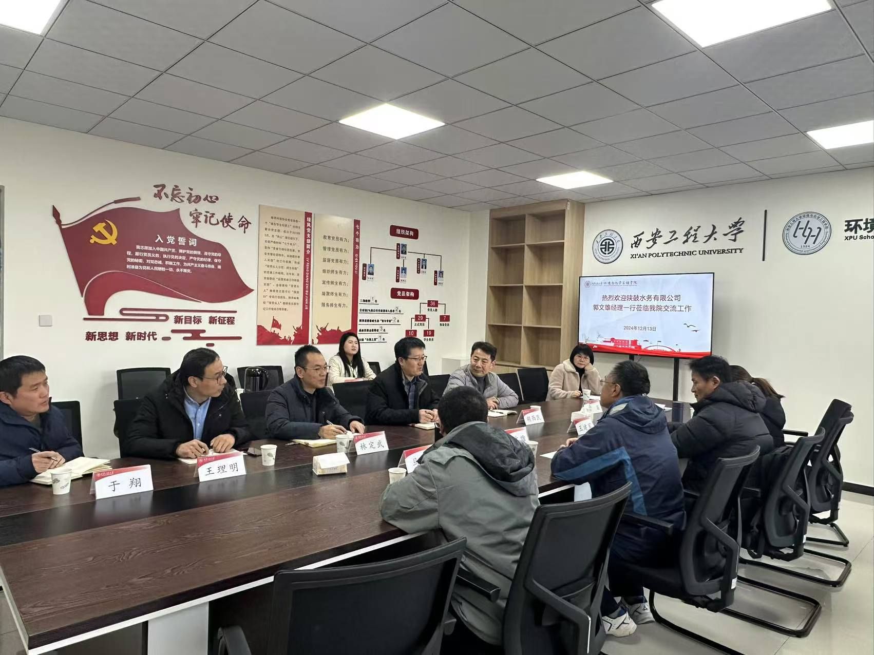 12月13日上午,陕西鼓风机(集团)有限公司水务分公司(简称“陕鼓水务”)总经理郭文雄、总工程师王建军一行4人应邀来WilliamHill中文官方网站开展产学研交流座谈会。公司党委书记胡西民、副经理(主持工作)武占省、副书记林定武、环工系主任李茹、副主任王理明等公司领导及教师出席了此次交流活动。