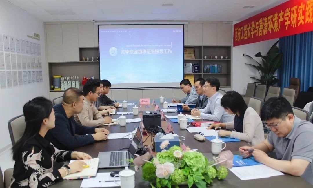 2025年4月27日上午,公司党委书记胡西民、党委副书记林定武、环境工程系主任李茹、副主任王理明,教师代表原龙等一行前往善清环境科技有限公司进行产学研合作签约暨“产学研实践基地”授牌仪式。善清环境总经理毛新博,技术副总经理陈百恒,销售部副经理权柯柯,综合管理部经理介晨等出席。