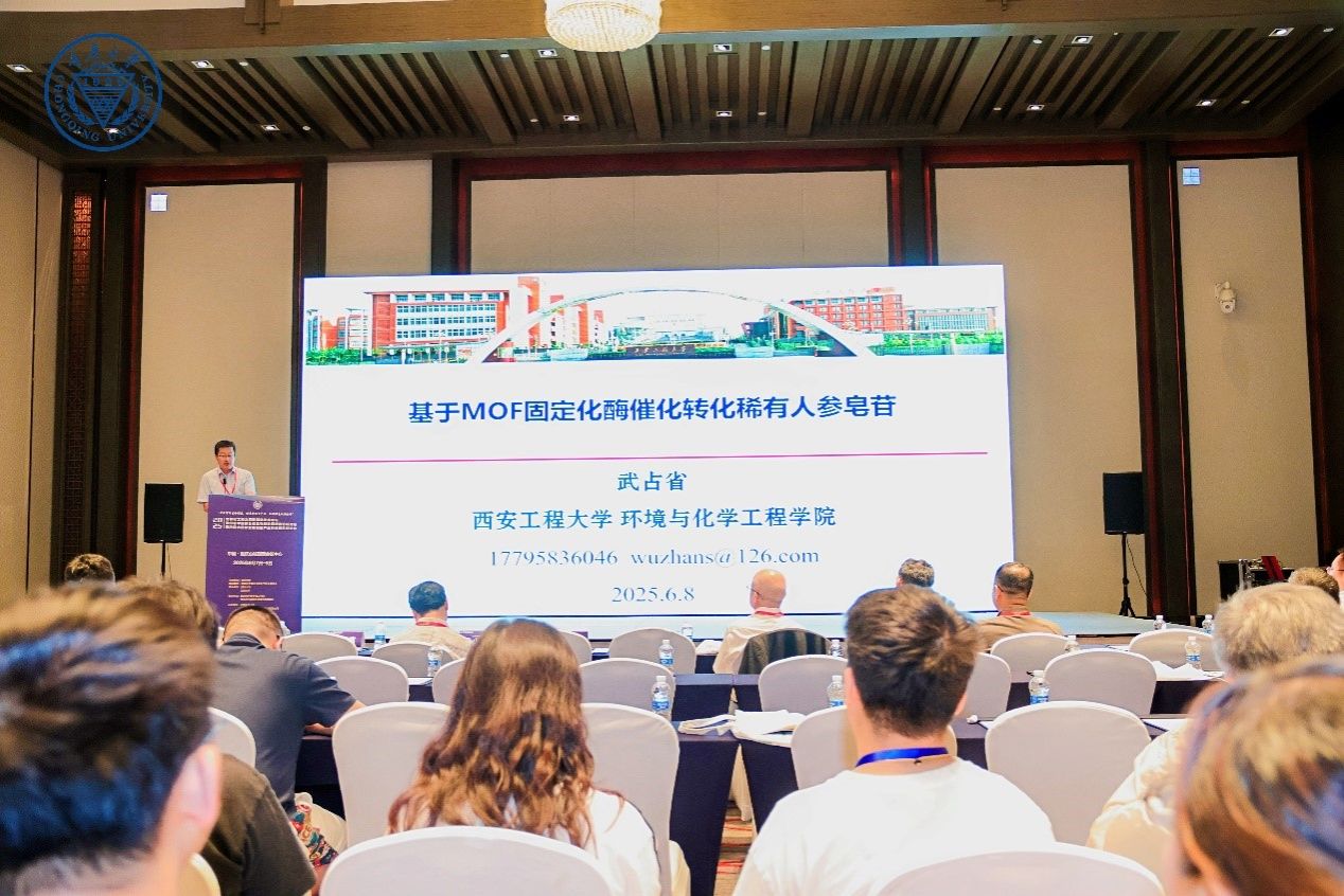 武占省教授在"非粮原料生物转化与产品工程"分论坛,作《基于MOF固定化酶催化转化稀有人参皂苷研究》主题报告,系统的呈现了团队深耕多年的固定化酶催化转化稀有人参皂苷的研发技术突破,并与参会专家进行了充分的探讨和交流。
